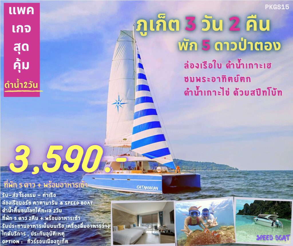 ล่องเรือใบ – ดำน้ำเกาะเฮ – ชมพรอาทิตย์ตก – ดำน้ำเกาะไข่ ด้วยสปีทโบ๊ท